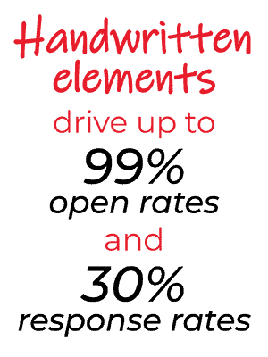 - Mail with handwritten elements achieves up to 99% open rates.